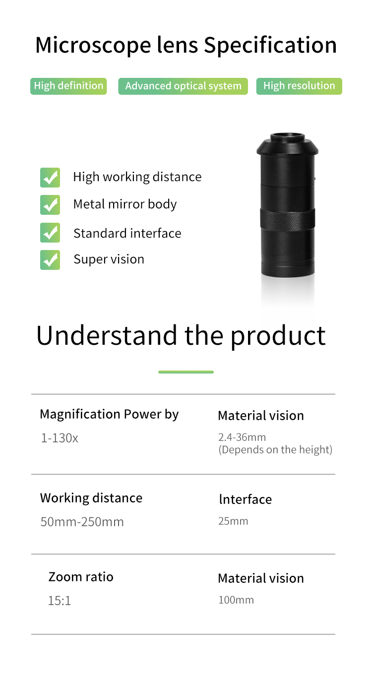 Monocular Lens >> Industry Lens 8X -100X Magnification Adjustable 25mm Zoom C-mount Lens Glass for Industry Microscope Camera Eyepiece Magnifier